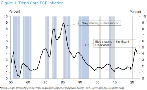 La historia demuestra que ése es el resultado cuando los bancos centrales intentan activamente reducir la inflación. Y hay matices de la "Gran Inflación" de los años setenta en la situación actual.