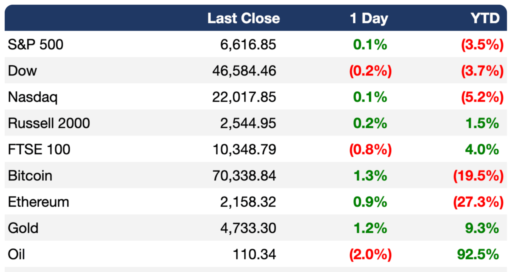 El precio del petróleo retrocedió mientras los mercados bursátiles en Europa y Asia avanzaron. El Brent cayó cerca de 13%, hasta ubicarse alrededor de los 95 dólares por barril, aún por encima de los niveles previos al conflicto, cuando rondaba los 70 dólares. Los futuros del S&P 500 anticipaban un alza cercana al 2.5% al inicio de la jornada en Estados Unidos, mientras que el rendimiento de los bonos del Tesoro a diez años descendió, al igual que el dólar frente a otras divisas, reflejando un giro hacia mayor apetito por riesgo en los mercados. (BBG)
