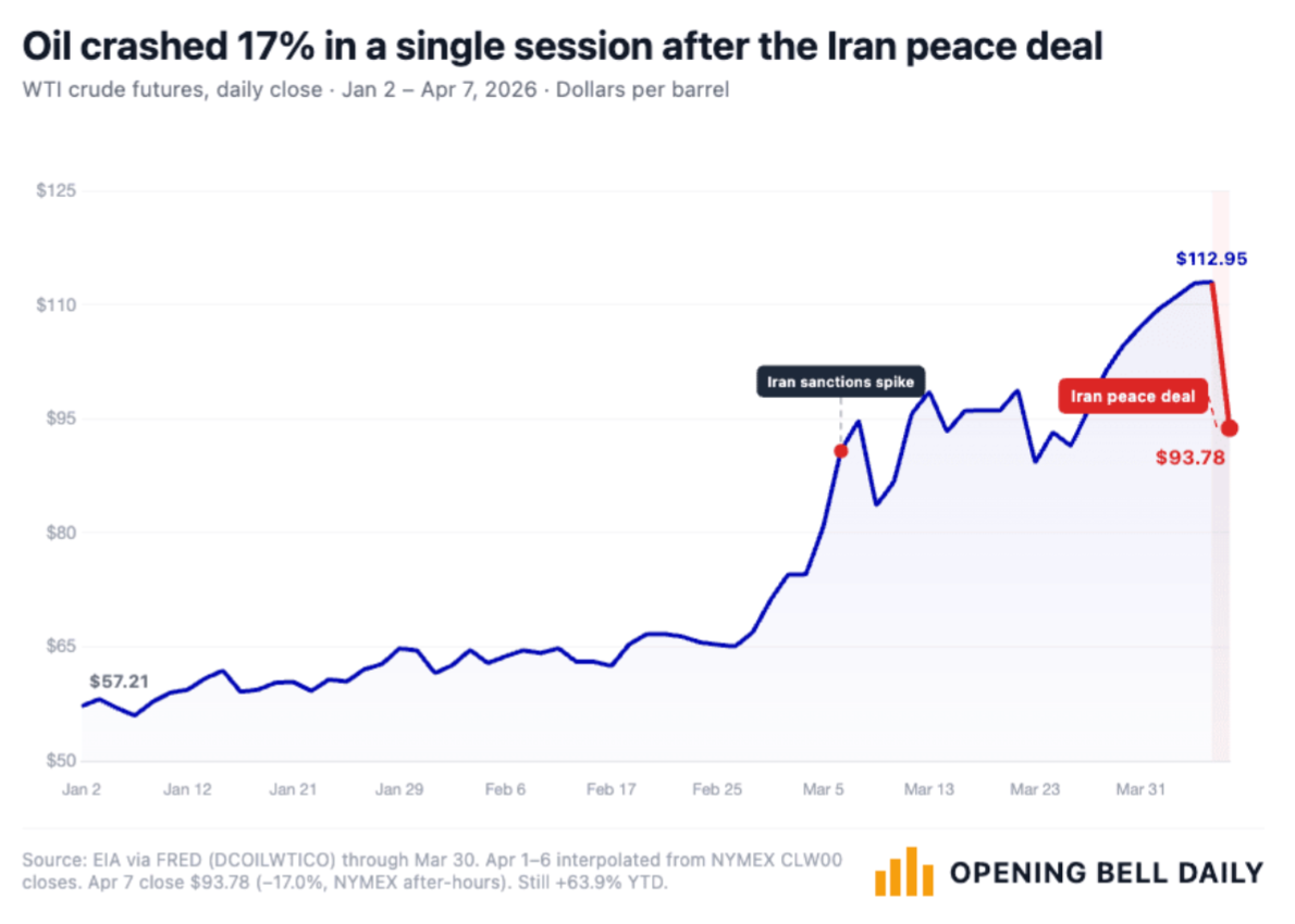 El conflicto entre Estados Unidos e Irán entró en una pausa con el anuncio de un cese al fuego de dos semanas, tras cinco semanas de tensión que habían presionado la oferta energética global y elevado la incertidumbre geopolítica. La reacción de los mercados fue inmediata: el petróleo se desplomó más de 20% y los futuros bursátiles en Estados Unidos repuntaron con fuerza, reflejando un ajuste abrupto del “premio de guerra” que se había acumulado desde finales de febrero. El acuerdo, condicionado a la reapertura del Estrecho de Ormuz, se produce después de una secuencia de amenazas crecientes por parte de Donald Trump que, en múltiples ocasiones, no se tradujeron en una escalada sostenida.