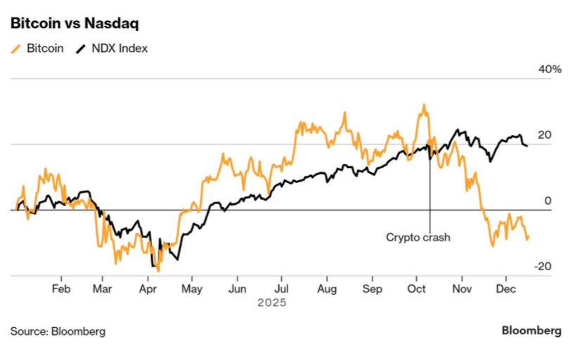 Bitcoin se encamina a su cuarta caída anual desde su creación, y a la primera que no coincide con un gran escándalo ni con un colapso sistémico de la industria. Aunque la corrección actual es mucho más moderada que las tres anteriores, ocurre en un contexto radicalmente distinto: desde el desplome de 2022, la adopción institucional se ha ampliado, la regulación se ha vuelto más clara y el sector ha encontrado, quizá por primera vez, un respaldo político explícito en Donald Trump. (BBG)