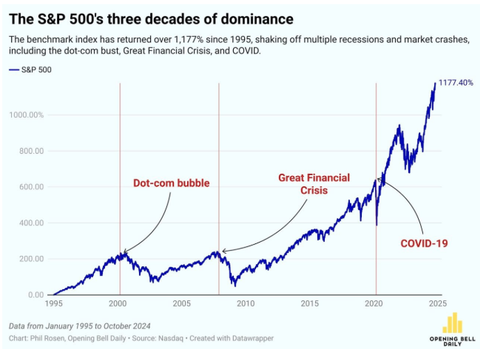 A pesar del optimismo histórico del mercado, el indicador CAPE sugiere que el S&P 500 está sobrevalorado, lo que podría llevar a correcciones o rendimientos planos, como ocurrió tras el estallido de la burbuja de las punto com. Si bien gran parte del crecimiento reciente se debe al auge de la IA y al rendimiento de Nvidia, los estrategas de Yardeni Research creen que los riesgos más importantes son los eventos políticos y geopolíticos, y cualquier venta masiva probablemente sea una corrección en lugar de un mercado bajista. (Opening Bell Daily)