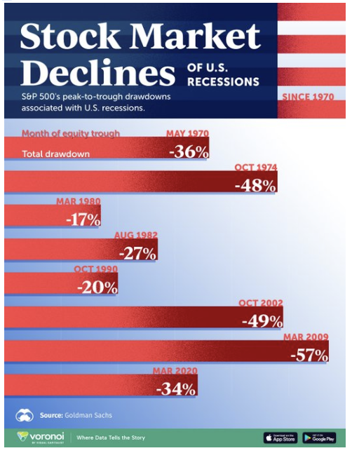 Gráfico: Las mayores caídas del mercado de valores de Estados Unidos desde 1970.