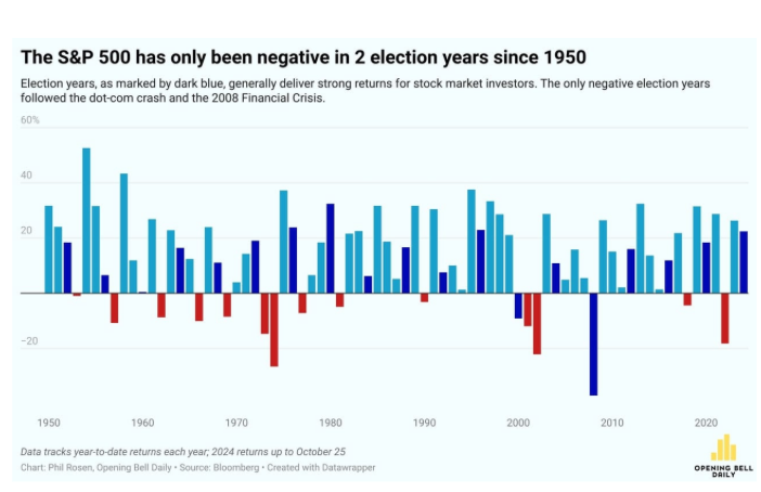 Desde 1950, el S&P 500 sólo se volvió negativo durante dos años electorales.