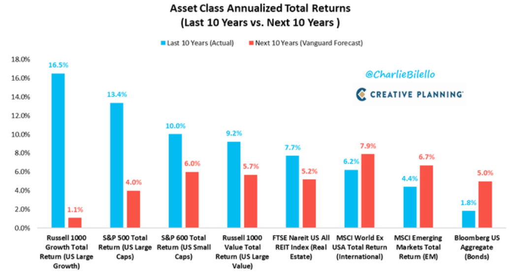 En los últimos 10 años, las acciones estadounidenses de gran capitalización han superado a todo lo demás por un amplio margen, con un rendimiento anualizado del 16,5 %.