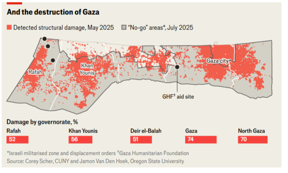 Israel bloqueó el ingreso de ayuda humanitaria al norte de Gaza después de que Binyamin Netanyahu acusara a Hamas de robar los suministros. Líderes tribales locales afirmaron que los hombres armados vistos escoltando los camiones de ayuda estaban allí para protegerlos, no para saquearlos. La asistencia humanitaria sigue llegando al sur de la Franja. Este jueves, el primer ministro de España, Pedro Sánchez, calificó la situación en Gaza como un “genocidio”, la acusación más contundente hasta ahora por parte de un líder europeo. (The Economist)