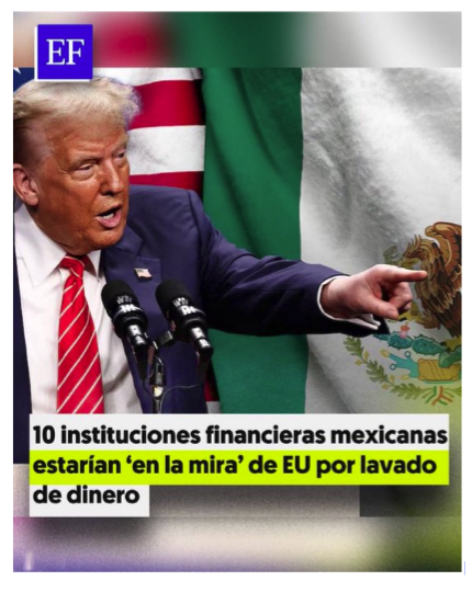 La Comisión Nacional Bancaria y de Valores (CNBV) de México ordenó este jueves la intervención de dos de las tres instituciones financieras señaladas por el Departamento del Tesoro de Estados Unidos por presunto lavado de dinero relacionado con el tráfico de fentanilo. La medida se produce en medio de crecientes tensiones entre ambos países sobre el combate al crimen organizado y el financiamiento ilícito. La virtual presidenta electa, Claudia Sheinbaum, aseguró que, hasta el momento, Estados Unidos no ha presentado pruebas concretas que respalden dichas acusaciones. (CNN)