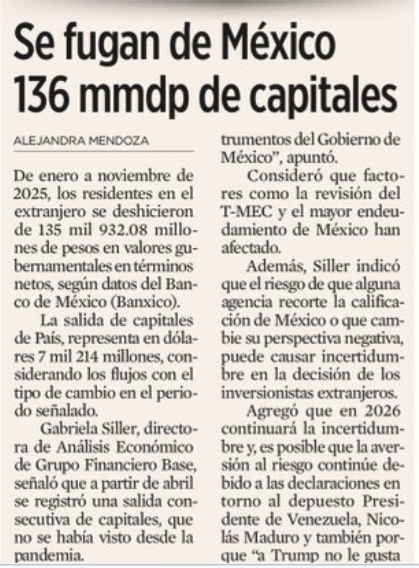 Y esto no es abstracto ni técnico: cuando el capital duda, el costo sube. Suben las tasas y el financiamiento se encarece. No es pánico. Es algo más peligroso: desconfianza administrada, mes con mes, gota a gota. Y cuando el mercado deja de creer, ya no hay discurso que lo convenza.