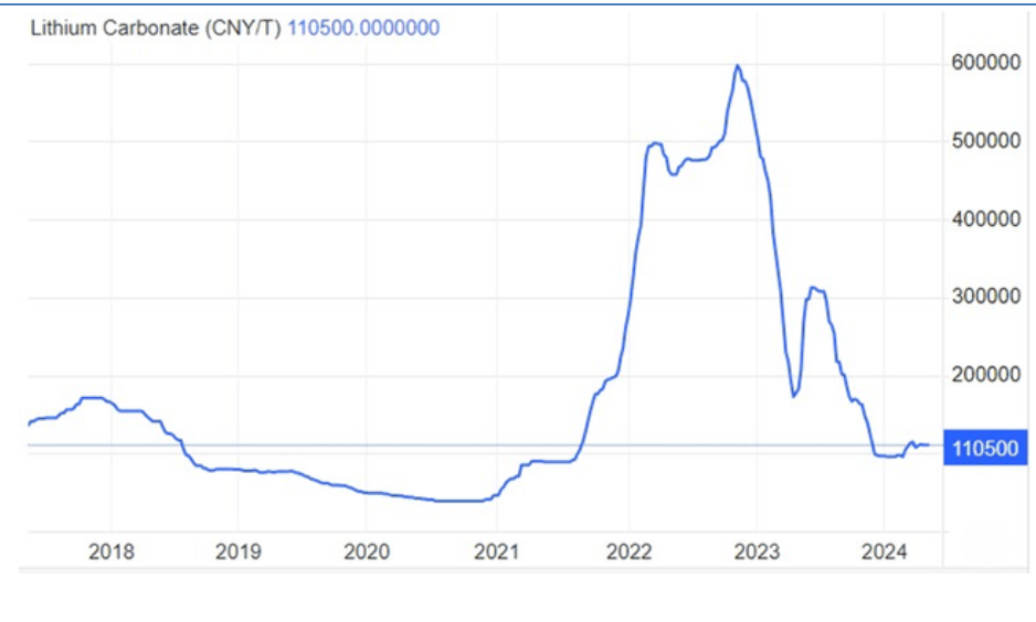 Con el mercado de vehículos eléctricos aún en crecimiento en 2024 y más allá, el exceso de oferta actual eventualmente terminará y los precios del litio deberían mejorar nuevamente. Estos ciclos son relativamente comunes en todo tipo de industrias de recursos, ya que los precios altos provocan un aumento de las inversiones, lo que causa precios más bajos, lo que provoca una disminución de las inversiones, lo que causa precios más altos, y así sucesivamente.