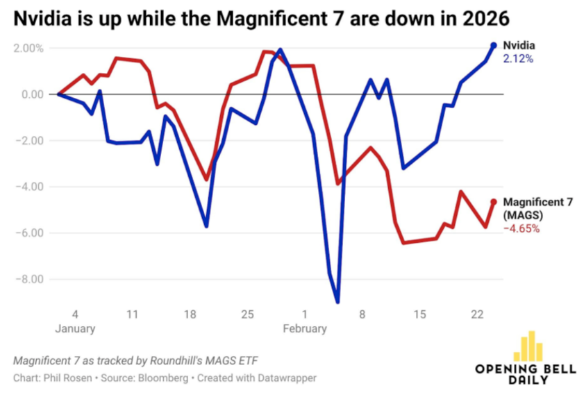 Los resultados de Nvidia se han convertido en el principal termómetro del ciclo de la inteligencia artificial, especialmente en un momento en que es la única de las llamadas “Magnificent 7” que mantiene ganancias en el año, desafiando el pesimismo reciente que ha golpeado al resto del sector tecnológico. Esta divergencia ha elevado el peso simbólico de su reporte: los inversionistas no solo evaluarán el desempeño de una empresa, sino la solidez de toda la narrativa de crecimiento impulsada por la inteligencia artificial, dado que Nvidia sigue siendo el proveedor dominante de la infraestructura crítica —los “picos y palas”— que sostiene este nuevo paradigma tecnológico.
