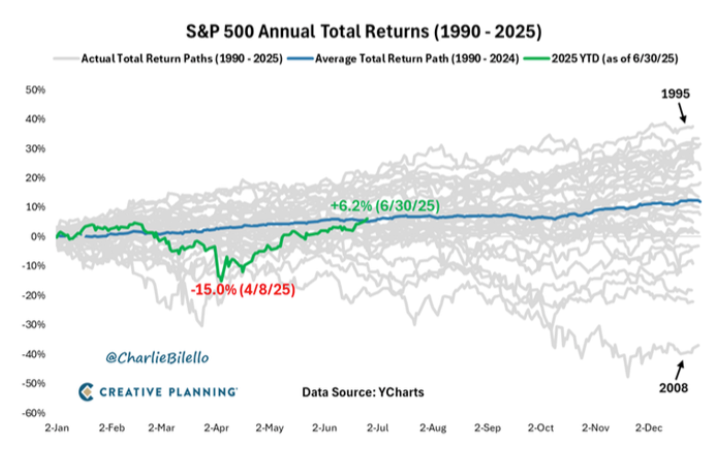 Con el primer semestre de 2025 concluido, el desempeño del mercado bursátil y del dólar muestra un contraste contundente: mientras el S&P 500 acumula un alza de 5.5% tras un inicio de año turbulento, el dólar ha perdido 10% de su valor solo en el último mes, registrando su peor primer semestre desde la ruptura del patrón oro en 1973. Las expectativas de recortes de tasas por parte de la Reserva Federal, el optimismo en torno a las utilidades corporativas y las señales de acuerdos comerciales por parte de la administración Trump han impulsado a Wall Street. Sin embargo, la creciente salida de capitales desde el dólar y los bonos del Tesoro refleja dudas sobre la estabilidad económica de largo plazo, alimentadas por la incertidumbre arancelaria y el impacto fiscal que implicaría la ambiciosa reforma tributaria que avanza en el Congreso. Aunque un dólar débil encarece las importaciones, también favorece a las multinacionales y exportadores estadounidenses, pero el deterioro acelerado del billete verde reaviva los temores sobre la pérdida gradual de su papel como moneda de reserva global. (MB)