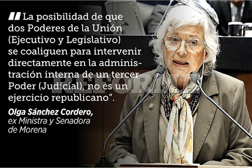 Y cuando todos esperaban que volviera a doblar la manos, finalmente Olga Sánchez Cordero se acordó que su carrera la hizo en el Poder Judicial y sacó la casta. La senadora morenista no sólo defendió los fideicomisos, sino que inclusive votó en contra de su desaparición. Su postura, totalmente contraria a la de la 4T, se sumó a la profunda molestia que existe entre jueces, magistrados, ministros y empleados administrativos del PJ, así como entre todas aquellas personas que consideran que el sistema judicial debe ser autónomo e independiente.