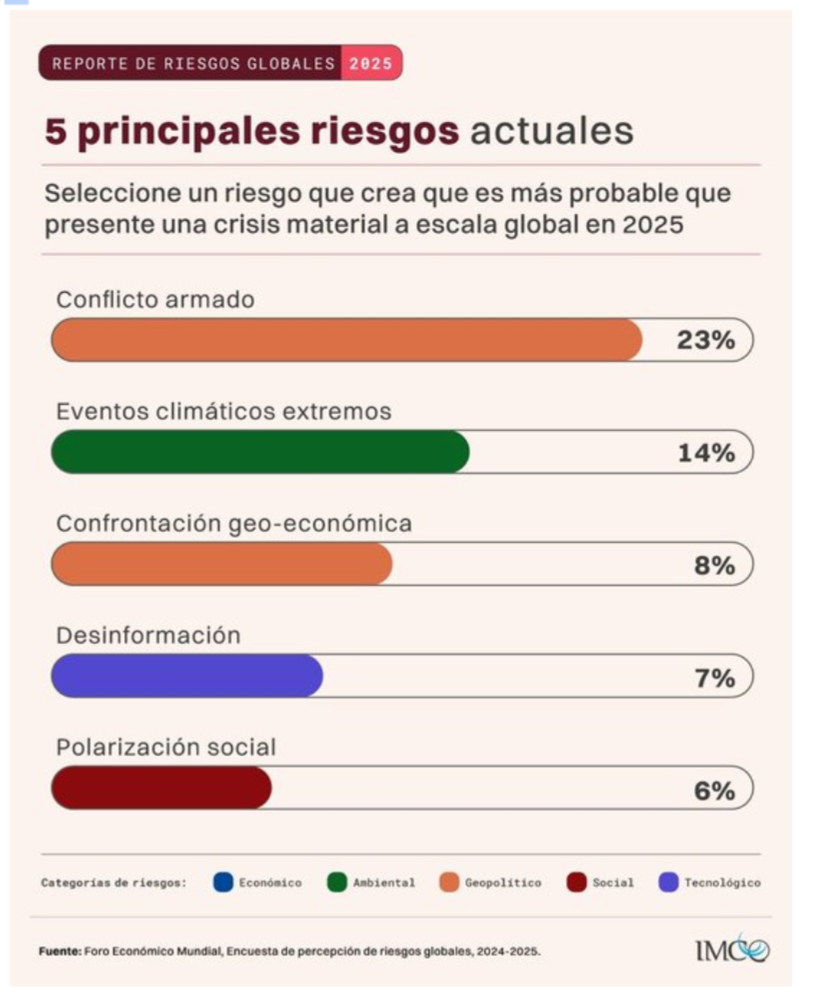 En 2025 se prevé que los principales riesgos serán conflictos armados y eventos climáticos extremos.