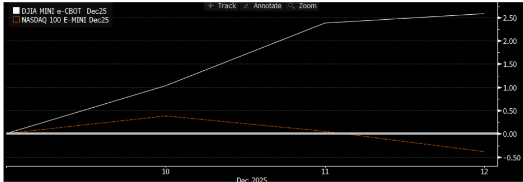 La denominada "operación de rotación" de los últimos días, alejada del sector tecnológico, ilustrada por el rendimiento superior del Dow Jones al Nasdaq (véase el gráfico a continuación), respalda dos temas: