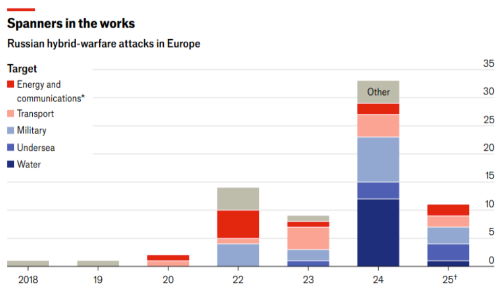En las últimas semanas, Rusia ha intensificado sus incursiones aéreas sobre territorio de la OTAN: drones sobre Polonia y Dinamarca, cazas MiG-31 penetrando en Estonia y enjambres sobre aeropuertos escandinavos. Estos incidentes —parte de la campaña híbrida de sabotaje que Moscú ha desplegado desde 2022— han obligado a invocar dos veces en dos semanas el Artículo 4 de la alianza (la cláusula que prevé consultas urgentes entre todos los miembros cuando alguno se siente amenazado en su integridad territorial o seguridad), un récord histórico. La lectura estratégica es doble: probar la capacidad de respuesta europea en un momento en que Trump se distancia de Ucrania, y sembrar dudas sobre la cohesión entre aliados. El riesgo es que un error de cálculo —un dron o avión derribado— desate una escalada en la que Washington podría optar por la indiferencia, dejando a Europa en la incómoda disyuntiva de reaccionar sola o exhibir fisuras internas frente a Moscú. (TE)