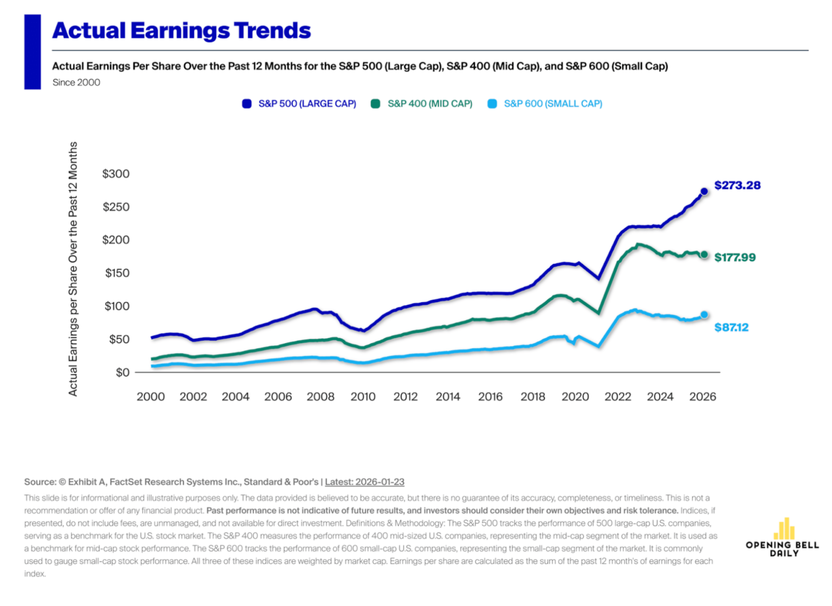 En 2025, el S&P 500 prácticamente cumplió lo esperado: las utilidades se ubicaron a solo 1 por ciento de la proyección inicial de 274 dólares por acción, pese a la volatilidad comercial y geopolítica. Ese desempeño ha reforzado el optimismo, con estimaciones de FactSet que anticipan un crecimiento de ganancias de 14 por ciento en 2026 y 15 por ciento en 2027.