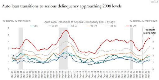 Desde que la Reserva Federal comenzó a subir las tasas en marzo de 2022, las tasas de morosidad de los préstamos para automóviles casi se han duplicado.