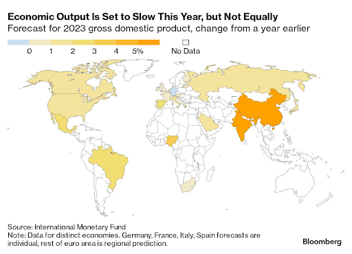 El Fondo Monetario Internacional elevó su perspectiva para la economía mundial este año, estimando que los riesgos se han aliviado en los últimos meses después de que Estados Unidos evitó un incumplimiento y las autoridades evitaron una crisis bancaria en ambos lados del Atlántico. El producto interno bruto mundial se expandirá un 3 % en 2023, más rápido que su proyección del 2,8 % en abril. (BBG)