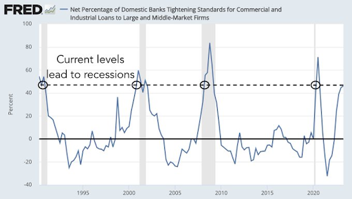 Los bancos están endureciendo los estándares de préstamo en consonancia con los niveles que siempre han llevado a una recesión.