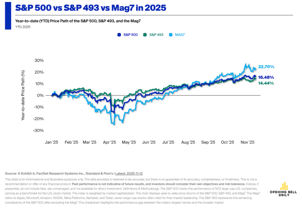 El retroceso reciente de las grandes tecnológicas no ha modificado la lectura de fondo entre los estrategas de mayor peso en Wall Street: las fuerzas que han impulsado al mercado durante todo el año siguen activas. La volatilidad responde más a factores coyunturales —la ausencia de datos oficiales por el cierre del gobierno, mensajes restrictivos de la Reserva Federal, ajustes corporativos y apuestas bajistas visibles— que a un agotamiento estructural del ciclo. Detrás del ruido permanece un hecho central: la demanda de infraestructura para inteligencia artificial continúa fortaleciéndose, mientras los flujos hacia fondos cotizados, el estrechamiento de los diferenciales de crédito y el repliegue del efectivo en fondos del mercado monetario apuntalan una base sólida para el avance bursátil.