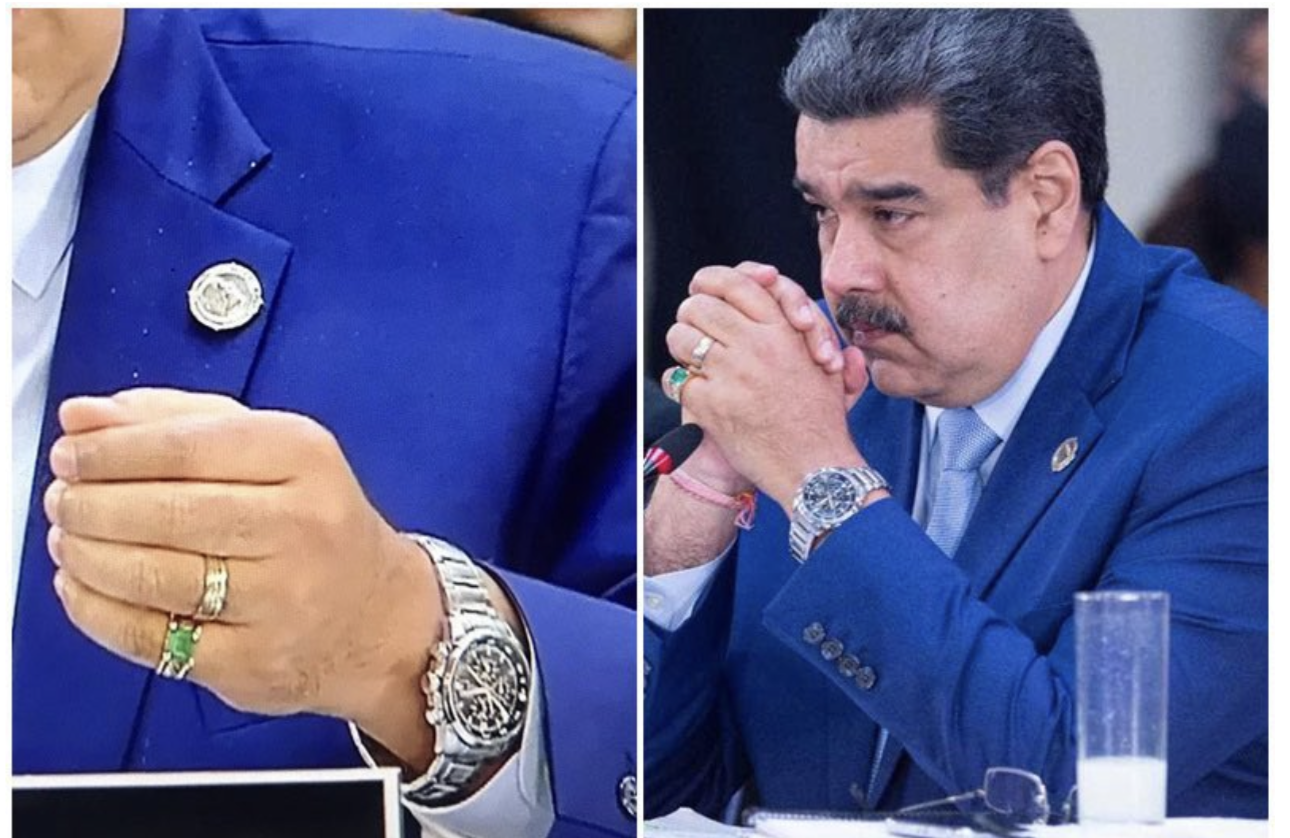 El tirano Nicolás Maduro usa Rolex y anillos de oro con esmeraldas mientras que los venezolanos cobran 2 dólares al mes y se mueren de hambre.