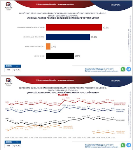 Xóchitl exige que AMLO "saque las manos de la elección". Al registrarse como candidata de PAN-PRI-PRD, llama al instituto y al TEPJF a estar atentos a los instintos autoritarios del Ejecutivo. (FIN)