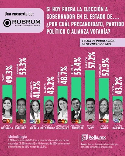 ENCUESTA Y RECESO... Encuesta De las Heras: Sheinbaum 63% de preferencia electoral; Xóchitl 33% y Álvarez Máynez 4%. (CON)