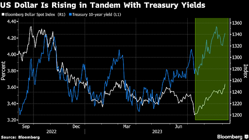 "Parece demasiado arriesgado vender dólares en corto", dijo George Boubouras, jefe de investigación del fondo de cobertura K2 Asset Management. "El tema de las tasas de los fondos federales más altos durante más tiempo dominará y los mercados comenzarán a descontar recortes de tasas en 2024 varias veces, creemos, sin éxito" (BBG)