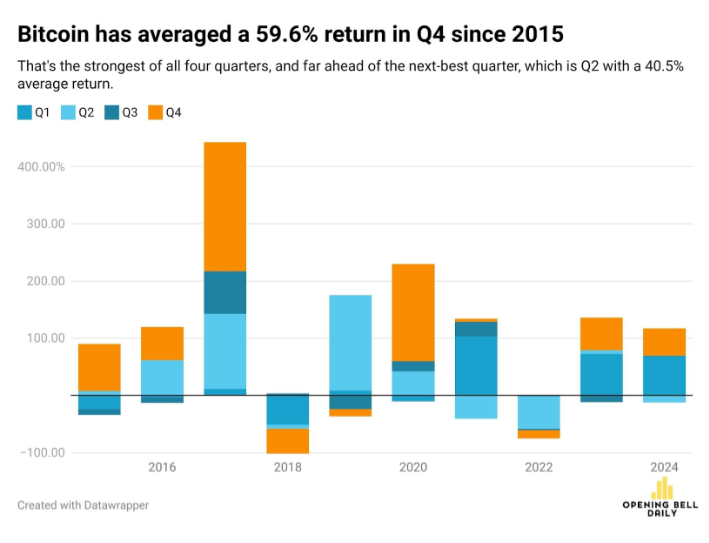 A ello se suman señales que refuerzan el apetito institucional: el ETF de BlackRock se ha convertido en el más rentable de la firma, los fondos de Bitcoin en el mundo ya superan los 200,000 millones de dólares en activos administrados y empresas como MicroStrategy han rebasado la capitalización de Coinbase. Incluso Deutsche Bank prevé que los bancos centrales podrían incorporar Bitcoin como reserva antes de 2030. En este nuevo ciclo, la criptomoneda ya no es un experimento financiero, sino un activo respaldado por la infraestructura de Wall Street. Si la historia sirve de guía, el último trimestre de 2025 podría marcar otro cierre de año récord para Bitcoin. (OBD)