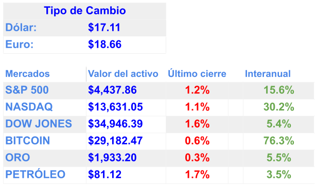AP News (AP), Axios (AX), Bloomberg (BBG), CNBC (Consumer News and Business Channel), ContraRéplica (CRON), Decrypt (DC), Diario Nocturno/Eje Central (NOC), El Economista (ECO), El Financiero (FIN), El Heraldo de México (HER), El Sol de México (SOL), El Universal (UNI), Excélsior (EXC), Financial Times (FT), Fox News (FOX), La Crónica (CRO), La Jornada (JOR), La Razón (RAZ), Milenio Diario (MIL), Morning Brew (MB), Motley Fool (Fool), Ovaciones (OVA), Periodic (PER), Reforma (REF), Reporte Índigo (RI), Reuters (RT), The Block (TB), The Information (IT), The New York Times (NYT), Wall Street Journal (WSJ), y Yahoo Finance (YF).