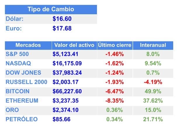 El mercado de valores viene de su peor semana del año y el camino por delante no será menos accidentado. Una confrontación militar directa entre Irán e Israel tiene a los inversionistas nerviosos por la posibilidad de una guerra regional más amplia que amenazaría los suministros de energía. En medio de la incertidumbre, los activos de refugio están generando interés. (MB)