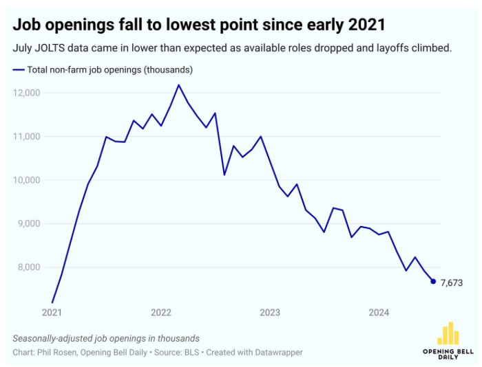 - Las ofertas de empleo en Estados Unidos cayeron a su nivel más bajo en 3.5 años. (BBG)