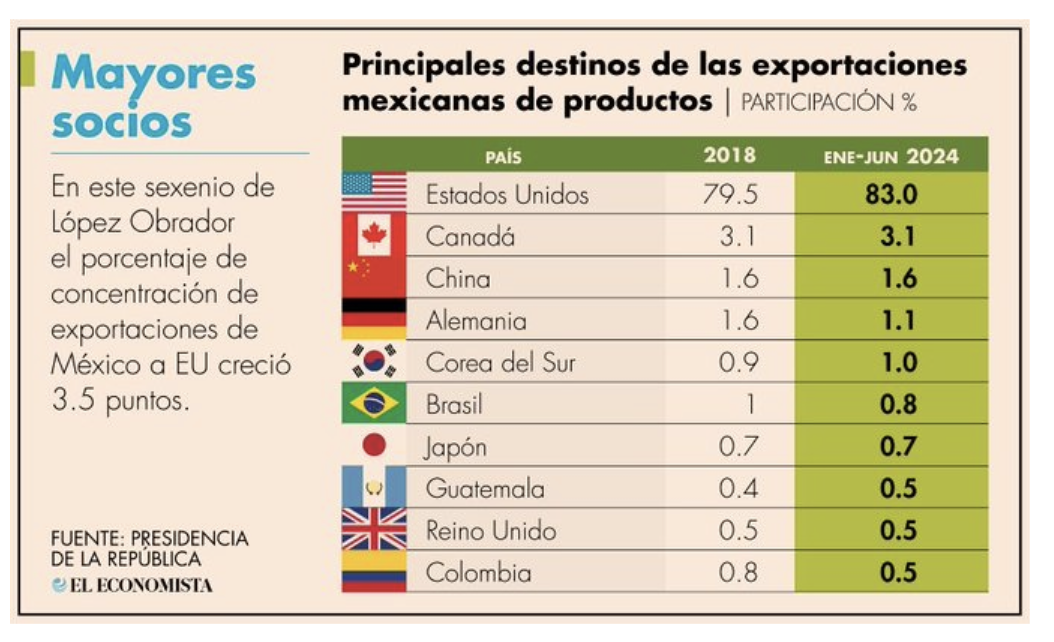 El 86% de las exportaciones de México es a EUA y Canadá, y dichos países advirtieron que la Reforma Judicial DAÑARA la relación comercial y el TMEC !!!!