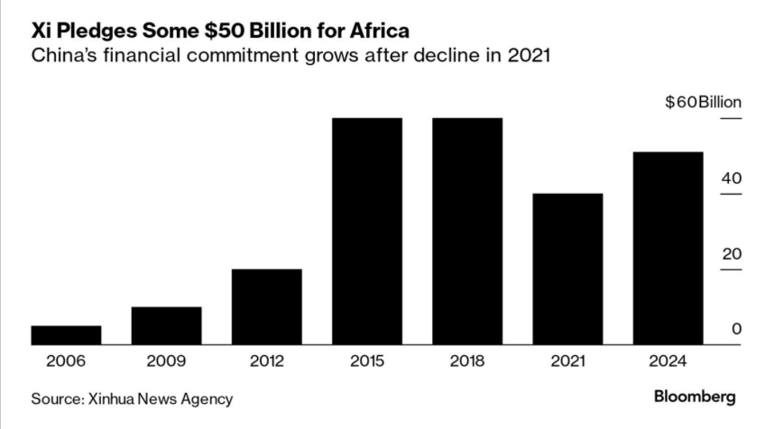 El presidente Xi Jinping ha prometido 50 billones de dólares en préstamos, financiamiento y ayuda durante los próximos tres años, en el Foro de Cooperación China-África en Pekín. En medio de las dificultades económicas de China, Xi ha utilizado la cumbre para diferenciarse de Occidente, afirmando que "el proceso de modernización occidental ha traído un profundo sufrimiento a la mayoría de los países en desarrollo", posicionando a China como un aliado clave en el crecimiento de África. (I.I)