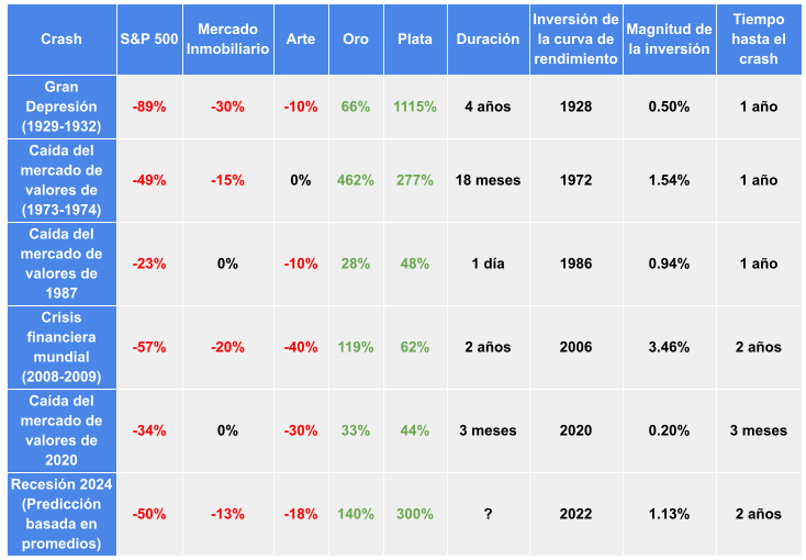 Es interesante notar que históricamente no ha habido recesiones en años electorales, y que de 11 veces que se ha invertido la curva en 10 hubo recesión y solamente una vez no hubo recesión en 1966. A continuación presentamos un cuadro con los datos históricos de los crashes un posible escenario basado en los promedios históricos.