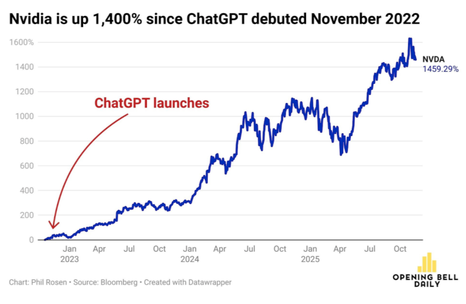 Los mercados globales arrancaron la semana con un nerviosismo palpable: caídas en Asia y Europa marcaron el tono para Estados Unidos, donde el S&P 500 retrocedió 0.8% y se encaminó a su peor racha desde agosto, arrastrando al Dow y al Nasdaq. En el centro de la inquietud está Nvidia, cuyo reporte de este miércoles se ha vuelto una verdadera prueba de resistencia para todo el ecosistema de inteligencia artificial, al grado de que su valuación de 4.6 billones de dólares funciona hoy como termómetro del mercado. La acción cayó casi 3% ante expectativas desbordadas y advertencias, como la de JPMorgan, de que una corrección en IA golpearía al resto del índice. A la par, la Reserva Federal no ayuda a calmar las aguas: llega un cúmulo de datos económicos retrasados que podrían enfriar las expectativas de un recorte de tasas en diciembre, con un comité dividido y probabilidades que ya cayeron a 47%. En un entorno donde todo retrocede —excepto el pulso de los inversionistas— el mercado parece caminar al borde de sus propios temores. (Quartz)