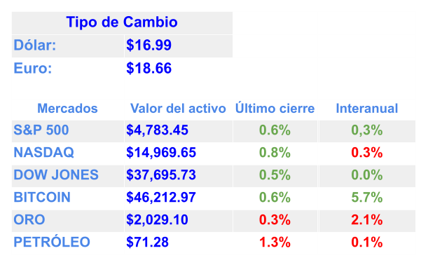 Los ataques de combatientes apoyados por Irán en el mar Rojo han bloqueado una de las principales rutas comerciales del mundo para la mayoría de los cargueros de contenedores / Los índices accionarios estadounidenses subieron antes de los nuevos datos de inflación de Estados Unidos que saldrán este jueves / Bitcoin obtuvo una validación que era ya muy necesaria. La Comisión de Bolsa y Valores estadounidense aprobó fondos cotizados en bolsa que invierten directamente en la criptomoneda / Jamie Dimon critica al bitcoin (otra vez). El jefe de JPMorgan reiteró su postura de que las criptomonedas no tienen valor y se burló de ellas como una herramienta para los delincuentes. Dimon también advirtió que podría producirse una recesión este año / Israel enfrentará las acusaciones de genocidio de Sudáfrica en un tribunal de la ONU / Estados Unidos y el Reino Unido insinuaron que podrían responder al mayor ataque hutí en el Mar Rojo hasta el momento con ataques directamente en Yemen / Tras los violentos hechos de este martes en Ecuador, el presidente Daniel Noboa declaró estado de emergencia y conflicto armado interno, mientras se extiende el toque de queda y la Policía y el Ejército custodian el país / La tasa de homicidios de Ecuador ha aumentado en más del 500% desde 2016 en medio de una mayor actividad de pandillas, y se estima que una cuarta parte de las prisiones del país están controladas por el crimen organizado / Corea del Norte busca enviar a Rusia nuevos tipos de misiles guiados tácticos, mientras que Pyongyang pronto podría realizar nuevas pruebas de sus propios misiles diseñados para realizar ataques nucleares, dijo el ministro de Defensa de Corea del Sur / Spirit AeroSystems, que fabrica el tapón de la puerta que explotó durante un vuelo de Alaska Airlines la semana pasada, fue demandada el mes pasado por “fallas sostenidas de calidad”. Alaska y United han encontrado pernos sueltos en los enchufes de otros aviones Boeing 737 Max 9 desde el incidente / Ayer se lanzó la tienda GPT, una plataforma donde los usuarios pagos de ChatGPT pueden compartir sus propios bots personalizados, conocidos como GPT, o descargar los de otros de forma gratuita / Un estudio publicado esta semana encontró que la típica botella de plástico de agua contiene hasta 100 veces más fragmentos de plástico de lo que los científicos pensaban anteriormente / Amazon Prime Video está despidiendo a cientos de empleados en un esfuerzo por recortar gastos / El neobanco Nu México ahora permite enviar remesas directamente desde WhatsApp y Walmart está añadiendo otros 1,8 millones de hogares a su servicio de entrega con drones en Texas. La compañía también está lanzando nuevas herramientas de inteligencia artificial, incluida una plataforma para crear atuendos virtualmente y una herramienta que rastrea los hábitos de compra para mantener abastecidos los artículos del hogar.