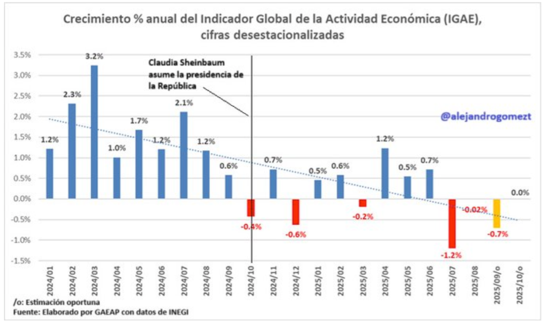Después de la caída del tercer trimestre, la economía mexicana habría registrado 0% de crecimiento en octubre.