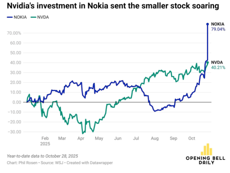 Nvidia volvió a dominar la atención de los mercados globales esta semana, eclipsando incluso la reunión de la Reserva Federal y los reportes de resultados de las grandes tecnológicas. La compañía anunció una inversión de mil millones de dólares en Nokia, una alianza con el Departamento de Energía de Estados Unidos y otra con Palantir, consolidando su posición como el epicentro de la revolución de la inteligencia artificial. Durante su conferencia GTC en Washington, el CEO Jensen Huang reveló que la demanda por sus chips supera los 500 mil millones de dólares en pedidos confirmados para el próximo año, una cifra sin precedentes que refuerza su dominio absoluto sobre el sector.