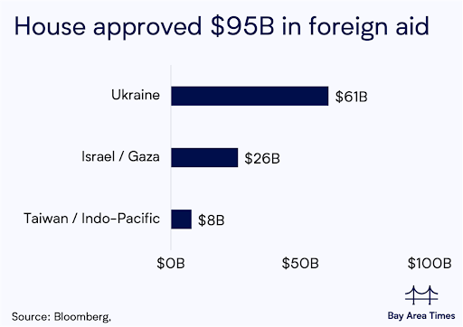 La Cámara Baja del Congreso estadounidense aprobó el sábado un paquete de asistencia para la seguridad exterior de 95.000 millones de dólares, y el Senado señaló que podría aprobar la legislación mañana.