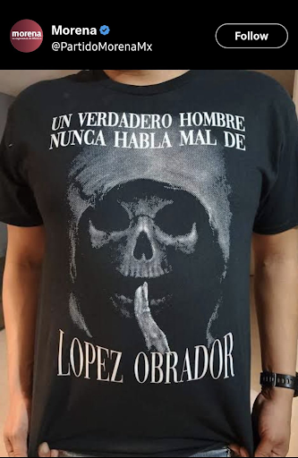 MORENA.- El partido Morena emitió un mensaje en el que relaciona la imagen de la Santa Muerte con el nombre de AMLO. "Un verdadero hombre no habla mal de López Obrador". (REF)