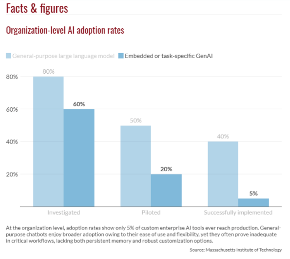 Una realidad incómoda: la inteligencia artificial todavía no es un negocio consistentemente rentable. La inversión privada se ha disparado —en Estados Unidos alcanzó 109.1 mil millones de dólares en 2024, muy por encima de China y del Reino Unido—, pero la relación entre capital y utilidades sigue siendo opaca. Los números de los líderes del sector retratan el problema: OpenAI habría perdido alrededor de 5 mil millones de dólares en 2024 con ingresos cercanos a 3.4 mil millones, y Anthropic habría perdido 5.3 mil millones con ingresos de 918 millones; incluso donde sí hay ganancias, como en ciertos proveedores de infraestructura, son la excepción. Un estudio del Instituto Tecnológico de Massachusetts (MIT) sobre adopción empresarial encontró que 95% de las organizaciones que implementan inteligencia artificial no reportaron retorno de inversión medible, lo que sugiere que la promesa de productividad aún no se traduce en resultados financieros generalizados.