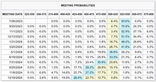 Los futuros de tipos de interés siguen subiendo rápidamente. Ahora hay un 94% de probabilidades de una subida de tipos de 25 puntos básicos este mes.