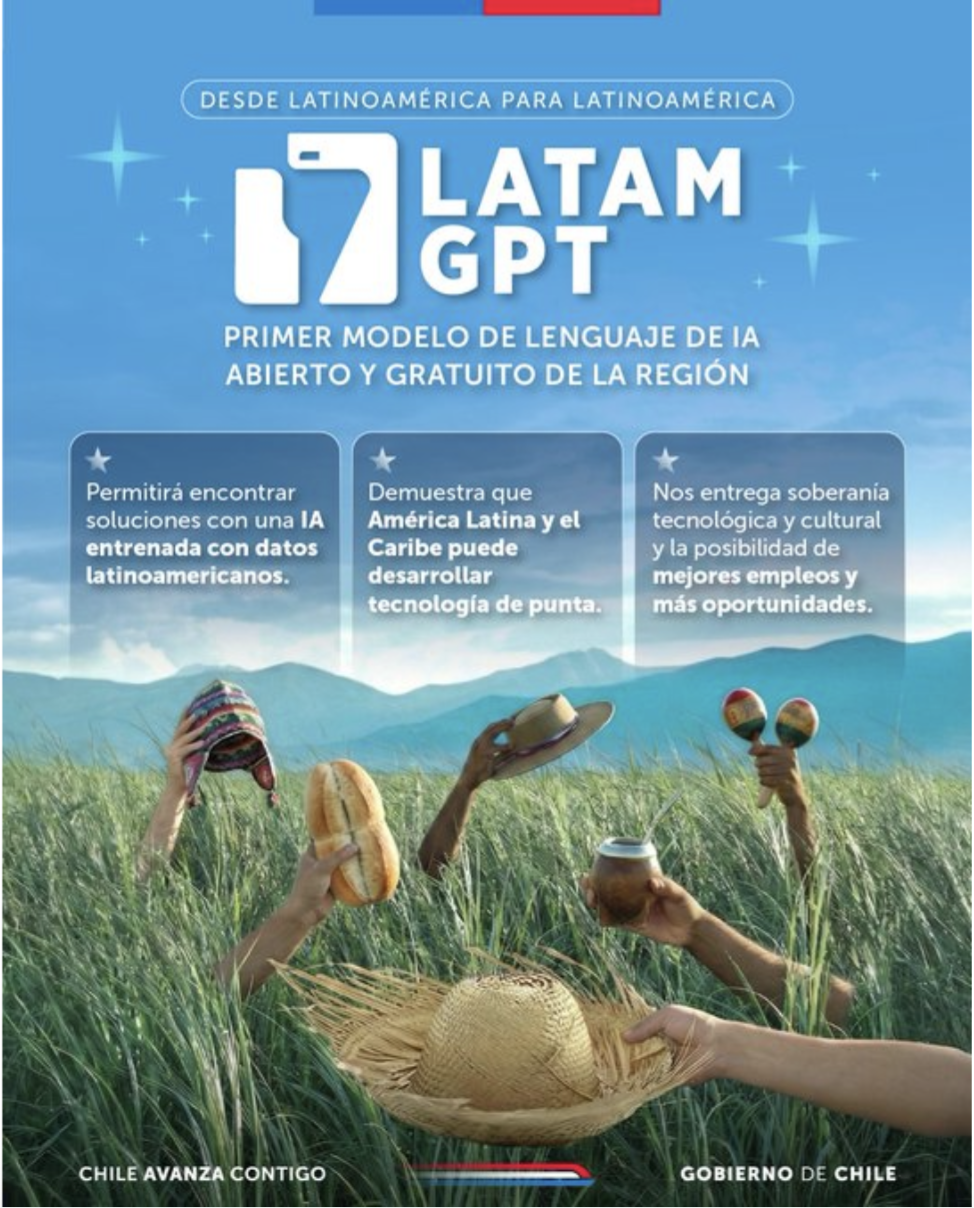 Desde Chile se presenta LatAm GPT, el primer gran modelo de lenguaje de inteligencia artificial para América Latina y el Caribe. Desarrollado de forma colaborativa por 15 países, ofrece una base abierta y representativa para que gobiernos, universidades, startups y comunidades construyan soluciones regionales con inteligencia artificial.