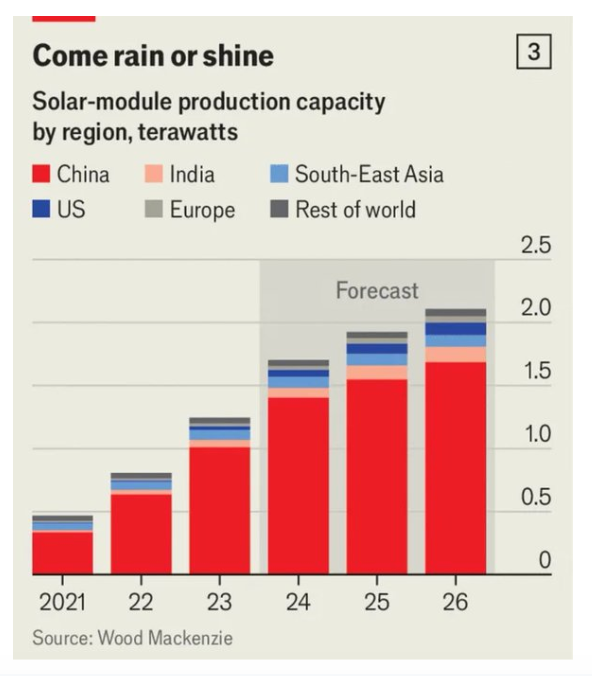 China ahora puede producir más del doble de módulos solares que los que se instalan en el mundo cada año.