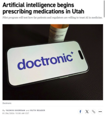 El caso más visible es Doctronic (una plataforma de salud digital que utiliza inteligencia artificial para gestionar atención médica básica, seguimiento de pacientes y prescripción automatizada bajo marcos regulatorios específicos), que lanzó este piloto con el objetivo de reducir fricciones, costos y tiempos de espera en el sistema de salud. Más allá del experimento puntual, el movimiento anticipa un cambio estructural: la medicina empieza a separarse entre decisiones clínicas complejas —que seguirán requiriendo supervisión humana— y procesos estandarizables, donde la inteligencia artificial puede operar con mayor eficiencia y consistencia. Si el piloto tiene éxito, podría acelerar una redefinición global del rol del médico, de los modelos de responsabilidad legal y del acceso a tratamientos en sistemas de salud presionados por costos y escasez de personal. (Diversas fuentes)