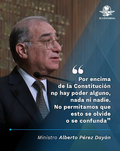 JUDICATURA Y LEGISLATIVO.- Por encima de la Constitución no hay poder alguno: ministro Pérez Dayán. El Poder Judicial de la Federación tiene perfectamente claro y entiende que, por encima de la Constitución, no hay poder alguno, nada ni nadie; y no permitamos que esto se olvide o se confunda, afirmó ayer el Ministro en la ceremonia del 107° Aniversario de la Promulgación de la Constitución Política de 1917, celebrado en la ciudad de Querétaro. (CRÓ)