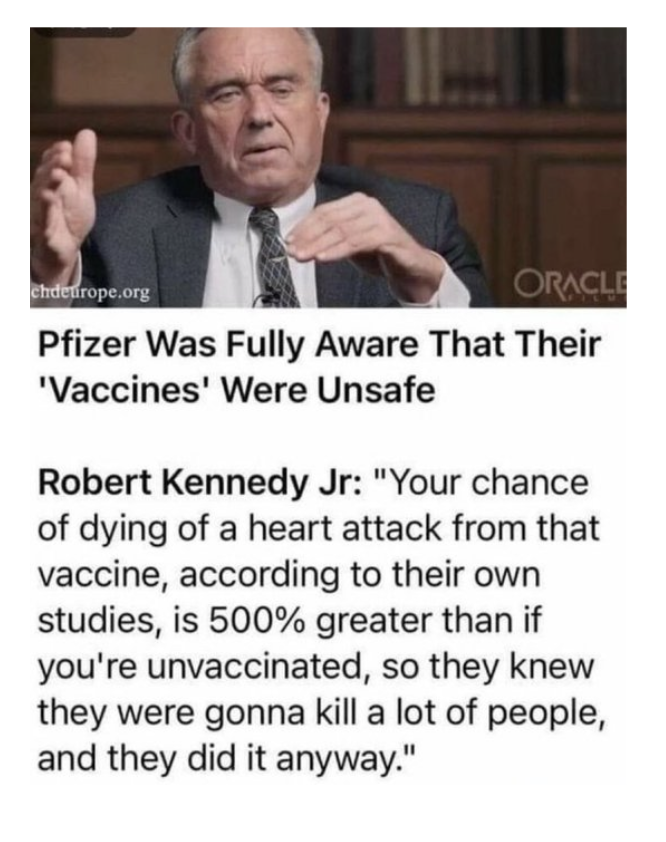 “Tu probabilidad de morir de un ataque cardíaco por esa ‘vacuna’… según sus propios estudios… es 500% mayor… que si no estuvieras vacunado…”