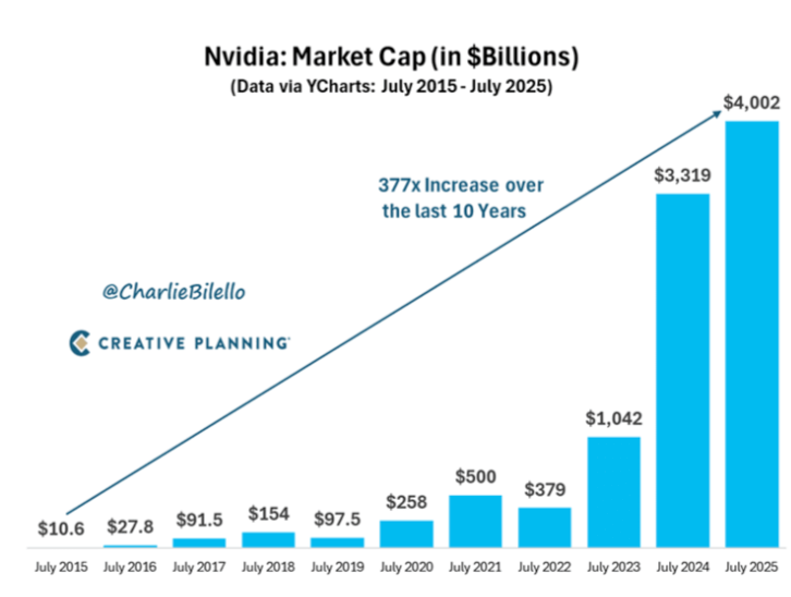 Nvidia sigue ganando tanto en Washington como en Wall Street. Este martes, sus acciones subieron 4% y marcaron un nuevo máximo histórico, tras recibir autorización del gobierno estadounidense para reanudar la venta de sus chips H20 de inteligencia artificial a China. El anuncio impulsó también a otros fabricantes como AMD, Micron y Broadcom. Bank of America elevó su precio objetivo para Nvidia de 180 a 220 dólares por acción. Con una capitalización de mercado cercana a los 4.2 trillones de dólares (trillion en inglés = un millón de millones), Nvidia ya representa casi el 8% del S&P 500, el peso más alto para una sola empresa en los últimos 45 años —más que todo el sector industrial (8.7%) y casi tanto como el de salud (9.1%)—.