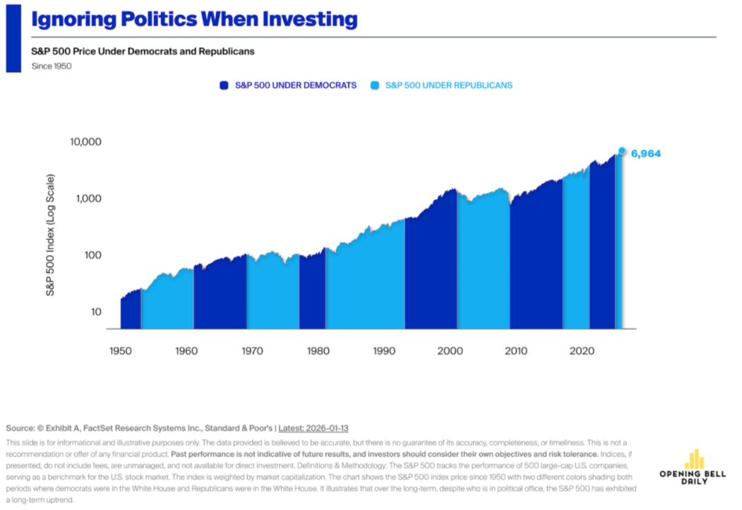 A pesar del ruido político —cambio de régimen en Venezuela, tensiones con la Reserva Federal y crisis en Irán—, el mercado accionario ha arrancado 2026 con calma: el índice Standard & Poor’s 500 va en positivo y la volatilidad (índice VIX) se mantiene por debajo de su promedio de largo plazo. La explicación es sencilla: los inversionistas priorizan utilidades futuras y, en segundo plano, el costo del dinero (las tasas de interés que determinan qué tan caro es financiarse y qué tan atractivo es invertir en acciones frente a bonos); si esos dos factores no se deterioran, la política rara vez cambia la dirección del mercado.
