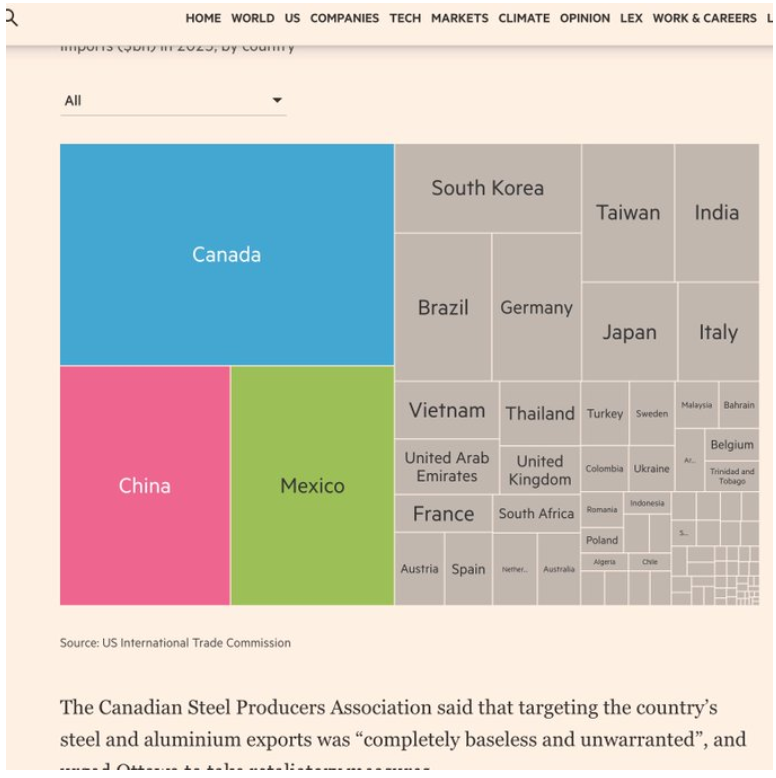 El presidente Donald Trump anunció un arancel del 25 % sobre las importaciones de acero y aluminio, lo que afectará significativamente a países como Canadá, México, Brasil, Emiratos Árabes Unidos y China, principales exportadores de estos metales a Estados Unidos. Mientras tanto, algunas empresas estadounidenses, como US Steel, ya se benefician con el alza de sus acciones, anticipando mayores ingresos por la reducción de la competencia extranjera y la posibilidad de aumentar precios. El impacto de los aranceles también se extiende a sectores como la moda, donde marcas como Halara y Shein han pausado campañas con influencers debido a la incertidumbre. Si la situación escala y surgen represalias comerciales, las empresas del S&P 500 podrían enfrentar una caída del 8 % en sus ganancias, según Bank of America. Aunque algunos consideran estas medidas parte de una estrategia de negociación, la incertidumbre sigue afectando a múltiples industrias. (BI)